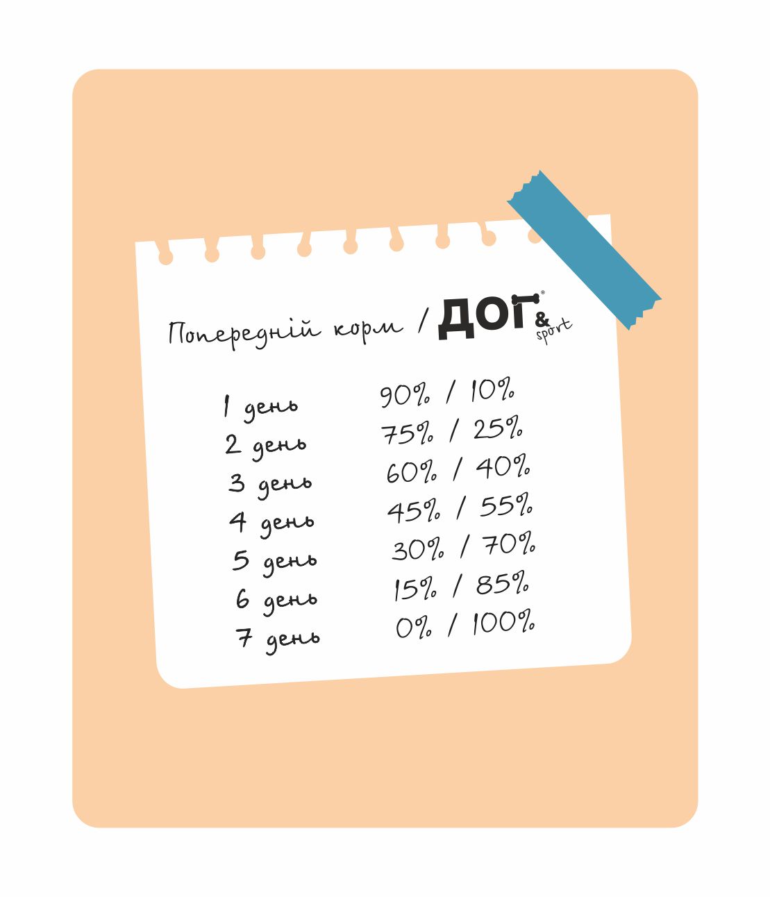 Рекомендації щодо переходу на новий корм вказані поруч із основним зображенням продукту.